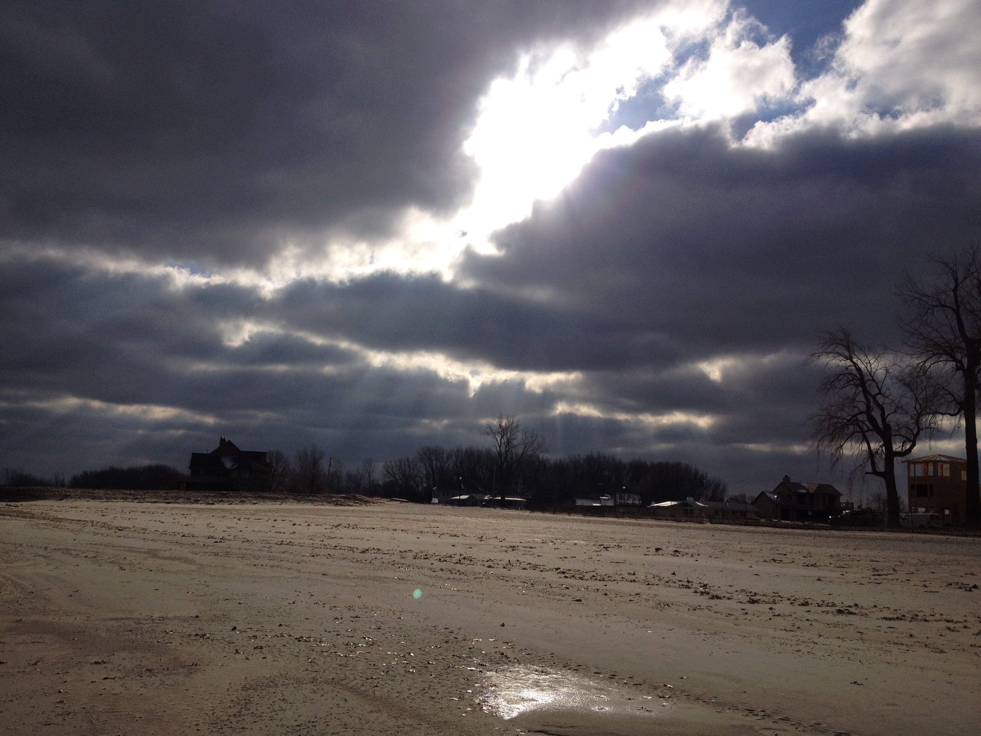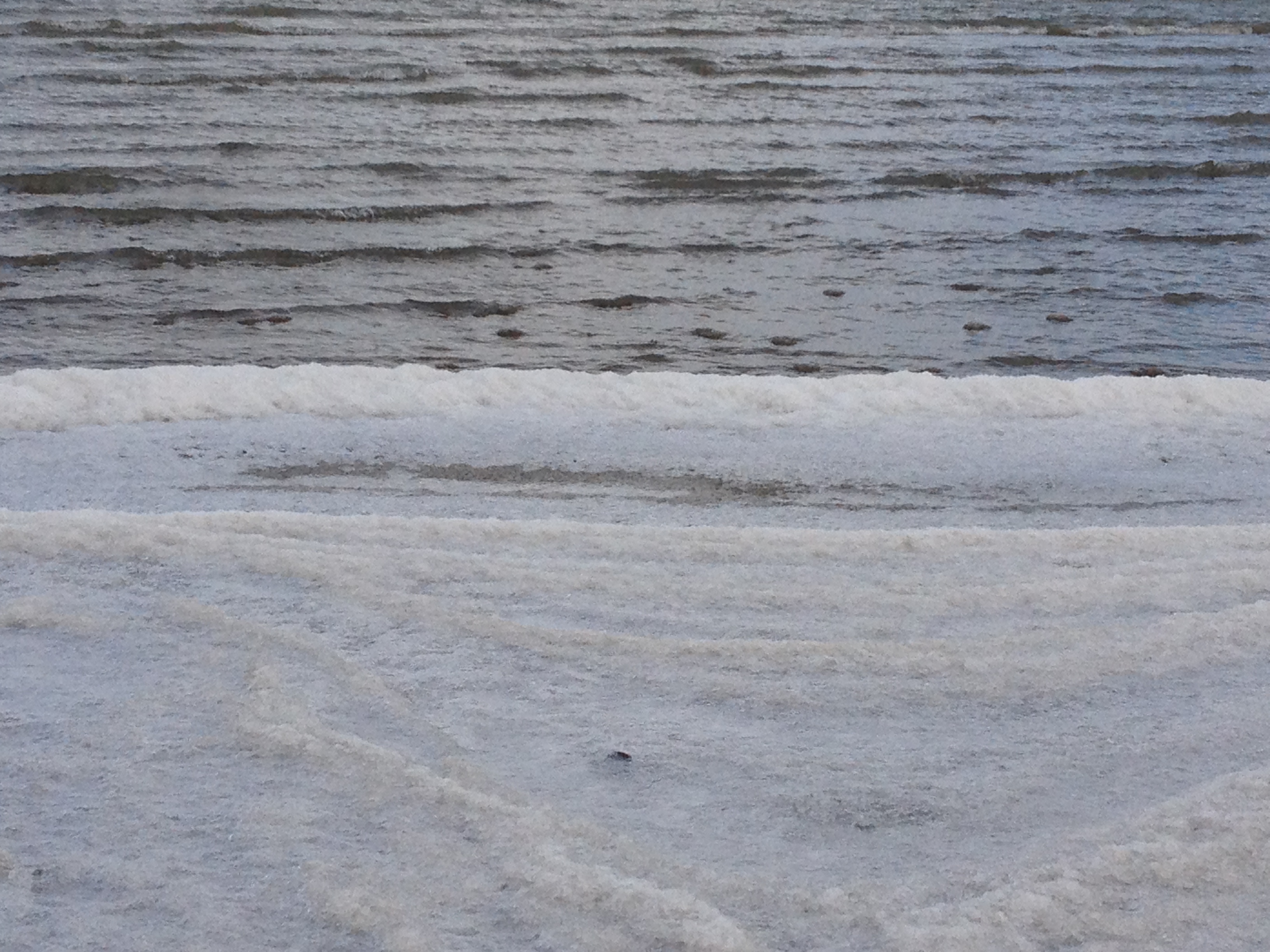 I had gone to this place with a purpose in mind, to let go of my loneliness and begin to be comfortable with myself and of being by myself. I reached into my bag for the intention tied to the rock that I had prepared earlier on the bench. I had expected to just be able to grab it and toss it out when I arrived but for some reason I was not ready to let it go. I started to feel myself pacing along the sand and that was making me nervous. I tried to walk while looking ahead and out into the beauty rather than watching where I was walking and all of a sudden there was a crunch sound from beneath my feet. When I looked down I could see that I was standing on ice that had formed over a puddle over the sand. It was the strangest thing because I was nowhere near the water, yet on this path a puddle had gotten trapped beneath the ice. I stood there for just a moment and then thought, I really don’t know how far down this puddle goes, girl you are on thin ice!!! Get off this now and give that intention to God, let it go and be free from it once and for all. The sound of that small section of frozen sand cracking was so loud it seemed to have awakened my spirit.