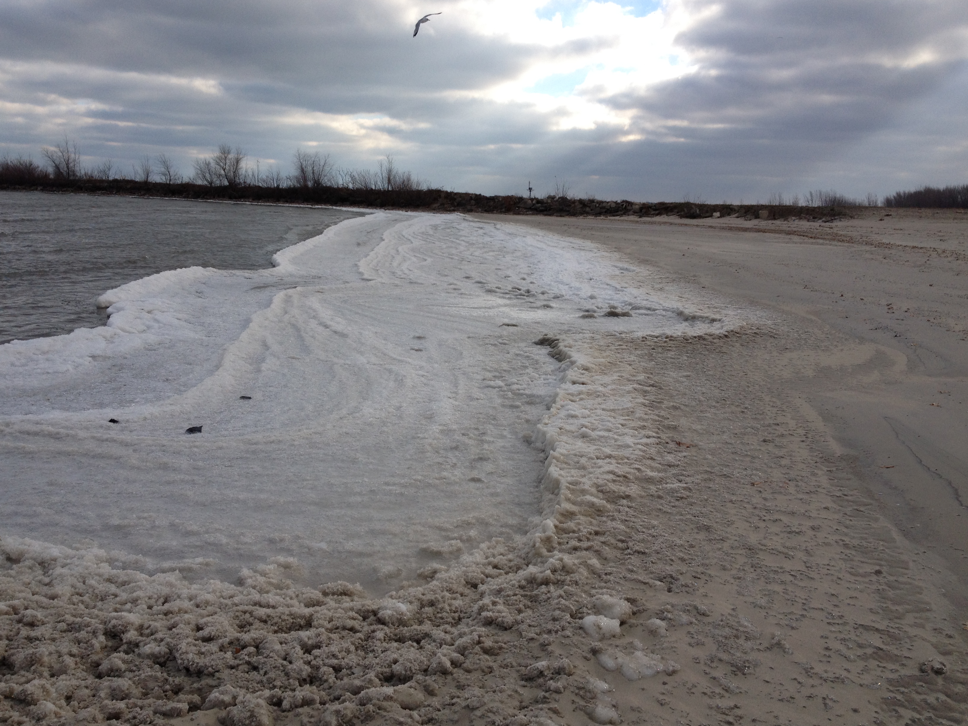 There was a slight breeze on the water and the air was fresh, and cold but inviting. Looking out into the lake and seeing how beautiful it looked with some ice just along the shore made me appreciate that moment. What a wondrous sight to see winter taking form right before my eyes. The sounds I heard were only of water and wind. I stood there alone with just my thoughts to keep me company. Usually those thoughts would make me nervous, but in that period of time I was calm. I walked along the shore picking up a few seashells that were not yet frozen in the sand. Those that had already been frozen were a beautiful sight as they glistened in the sun.